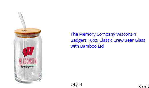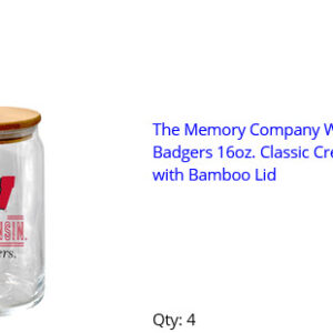 - 16 oz. Bamboo Cover Glass: A versatile glass with a bamboo lid, emblazoned with the Wisconsin Badgers emblem, great for both hot and cold beverages.