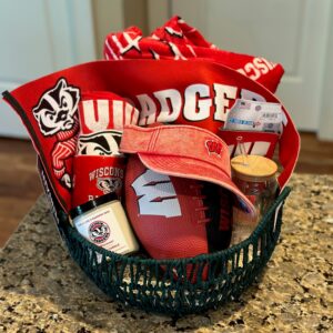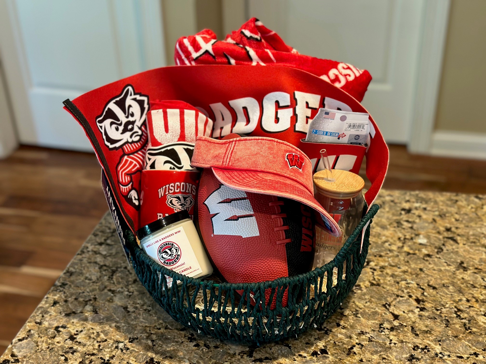 The Badger Bros Welcome to Madison Gameday Basket is a thoughtfully curated gift basket designed for Wisconsin college students, celebrating the spirit and pride of being a Wisconsin Badger. The basket features a variety of themed items perfect for game day or any day spent on campus: